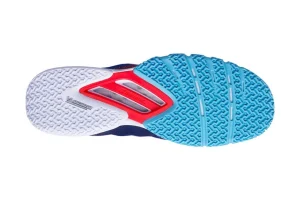 La collaboration entre Babolat et Michelin a permis de créer une semelle spécialement adaptée aux courts de padel. Son motif en chevrons modifiés permet d’équilibrer parfaitement l’accroche et le glissement, offrant aux joueurs la possibilité d’enchaîner des mouvements explosifs tout en maintenant une maîtrise totale des freinages et des changements de direction.Une structure respirante et sans couture
